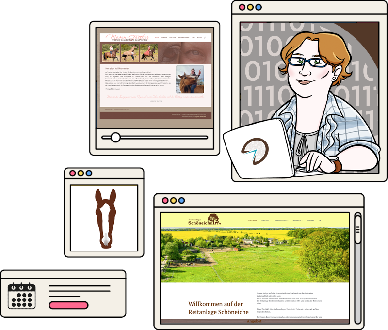Regelmäßige Betreuung Deiner Website, Deines Onlineshops oder Deiner Social-Media-Präsenz, damit Du Dich auf die Versorgung der Pensionspferde, den Reitunterricht, den Beritt, den Hufbeschlag oder andere Pferdedienstleistungen konzentrieren kannst.